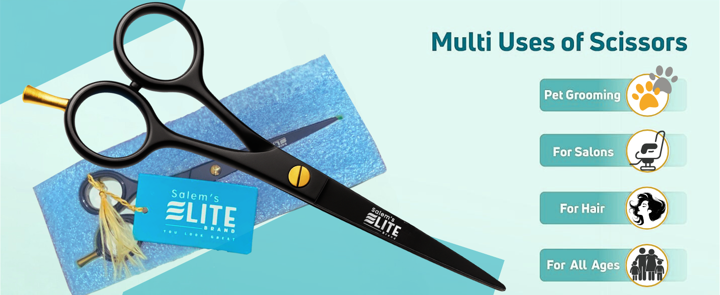 Salem's Elite Hair Cutting Barber Shears Scissors – 6.5 Inch Professional Hair Cutting Scissors for Men, Women, and Children– Premium High Carbon Stainless Steel